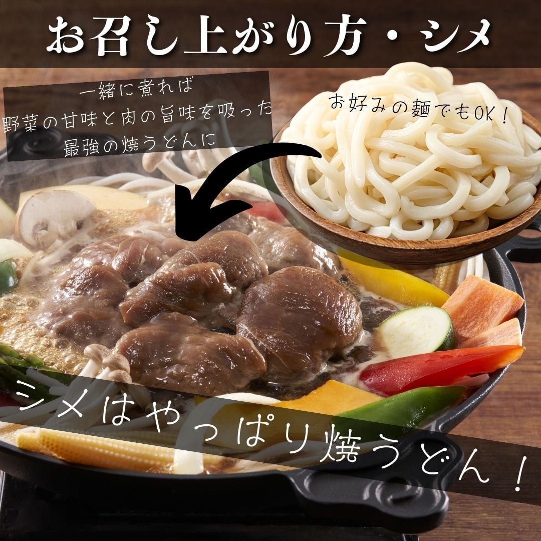 お肉は両面の色が変わったら食べられます。肉汁とタレで野菜が煮込まれたら食べごろ