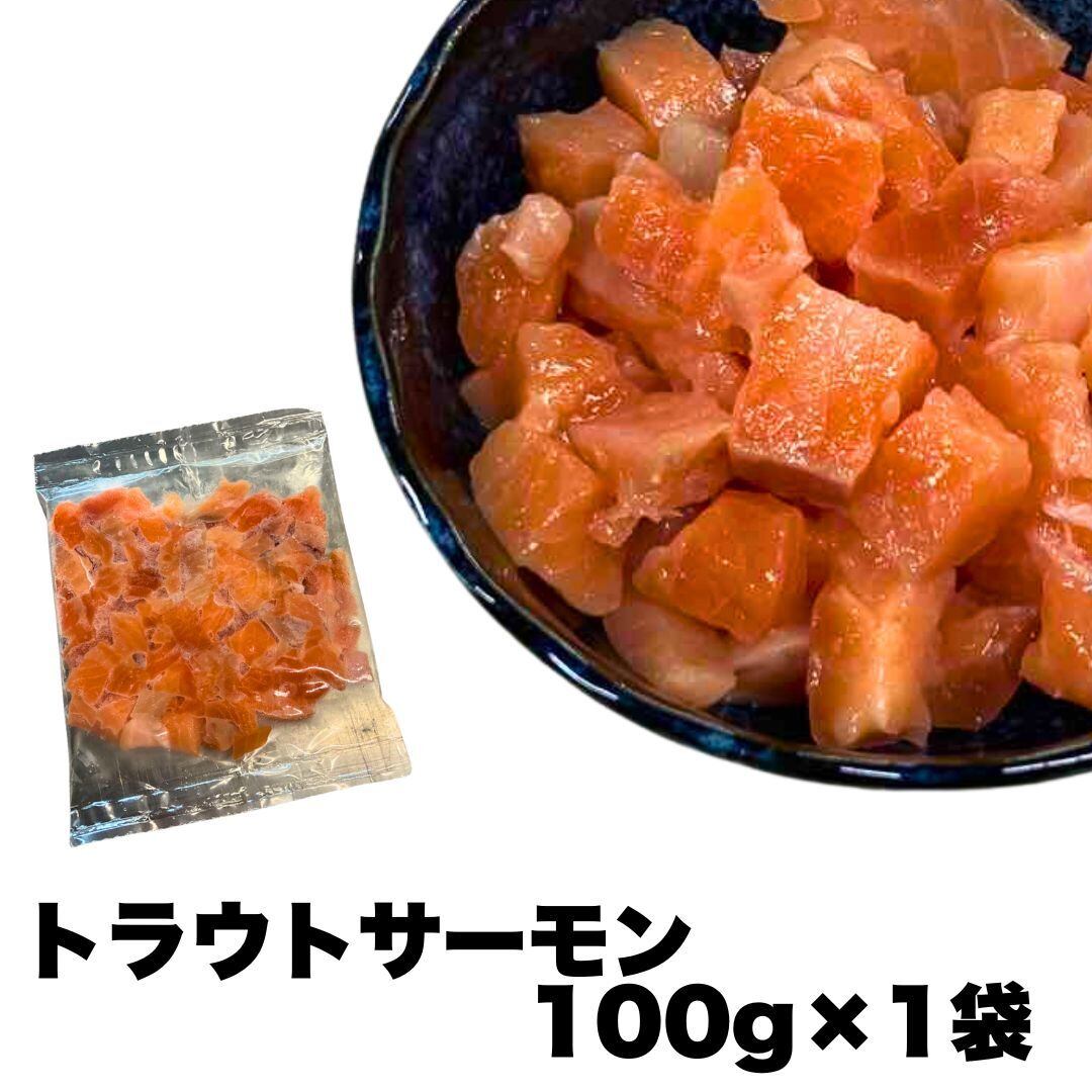 鮪・サーモン・イカのぶつ切りが各100gずつパックに入って冷凍されています。解凍してご飯に乗せるだけでボリューム満点の海鮮丼をお手軽に楽しめます
