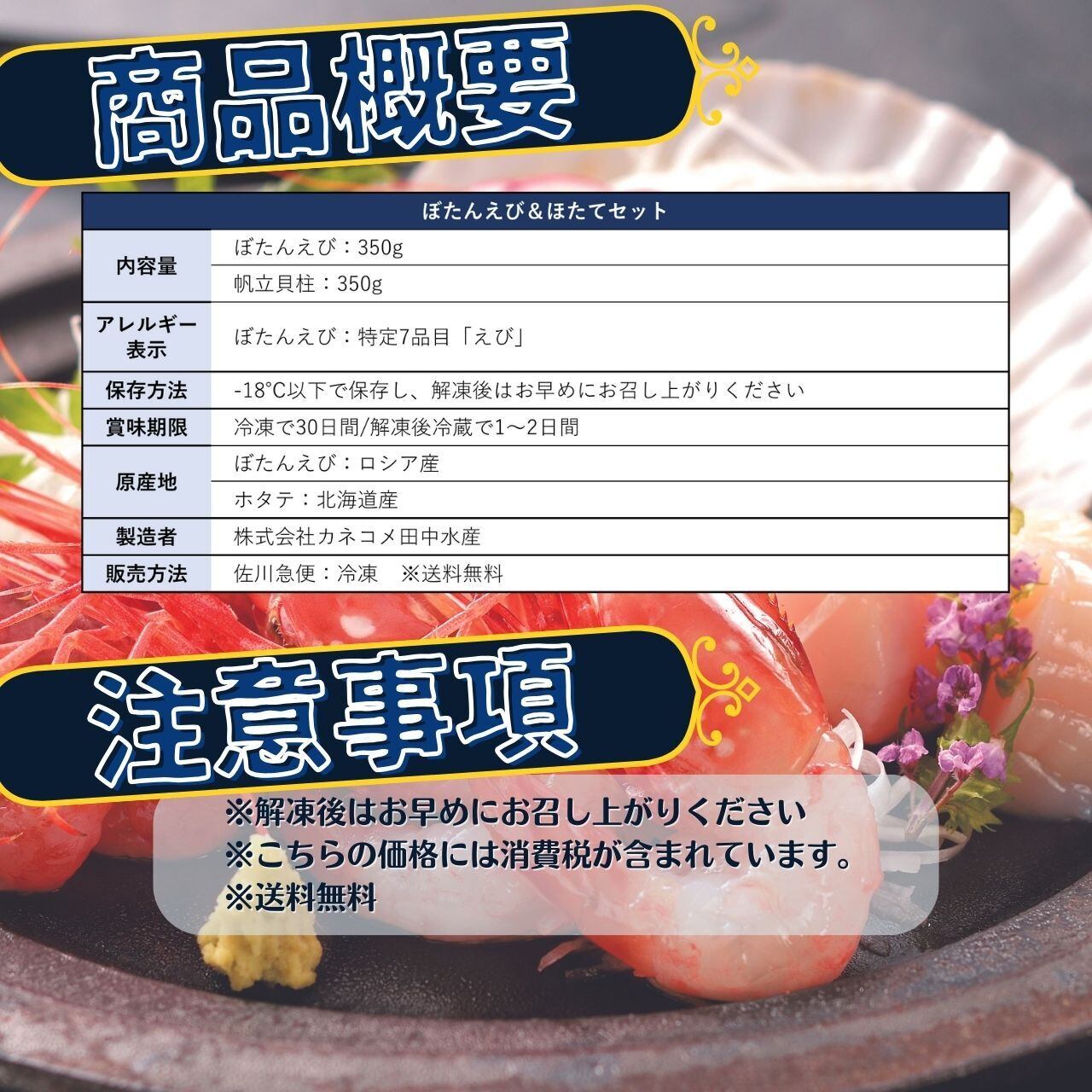 北海道産の新鮮な帆立と、ロシア産のとろけるぼたんえびのセットです。